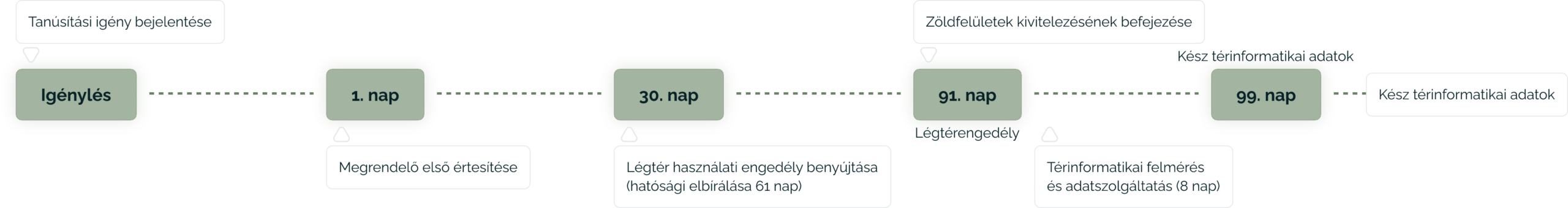 Az igénybejelentés a zöldfelületek kivitelezésének befejezése előtt kell, hogy történjen, minimum 91 nappal! Ezen időintervallumban kell kiválasztani a tanúsítót és leszerződni vele.